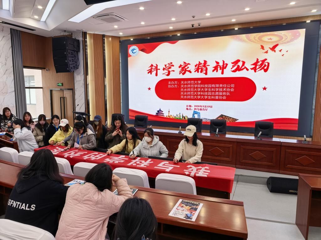 3月19日,天水师范大学“科学家精神弘扬”主题科普活动于四号报告厅成功举办。本次活动旨在响应甘肃省科协关于弘扬科学家精神的工作部署,充分发挥高校在科学精神传承、科技创新引领、服务社会发展中的核心作用,聚焦感悟科学家精神、激发科研创新活力、凝聚报国向心力展开,引导师生深度理解科学家精神的时代内涵,为校园科技文化建设注入持久精神动力。